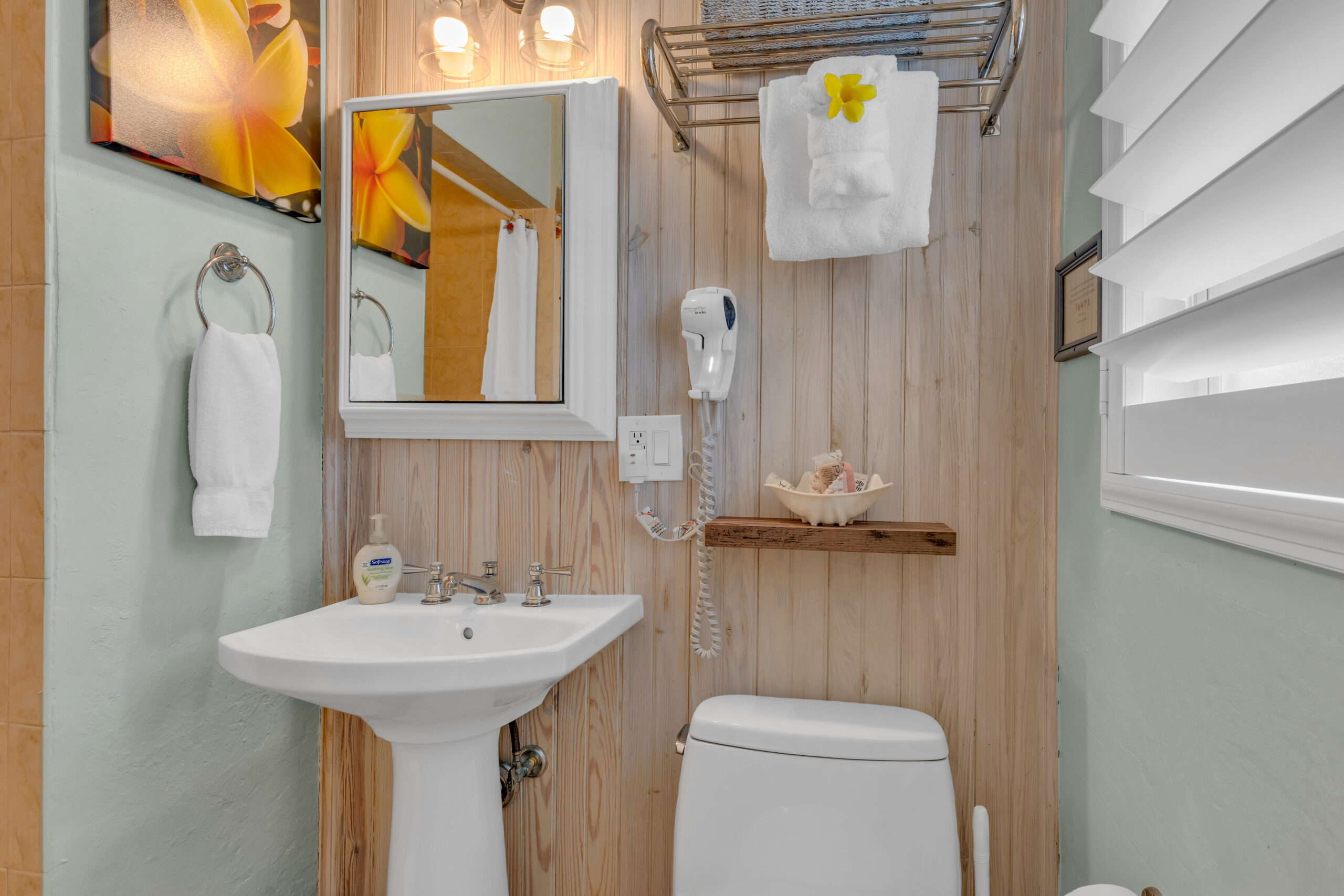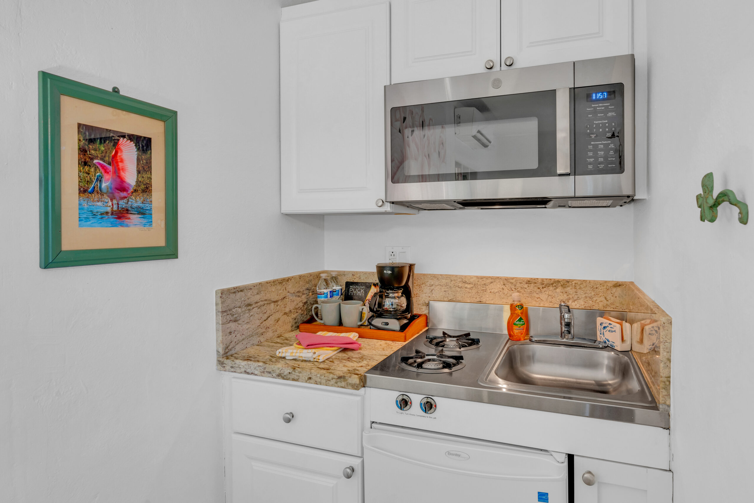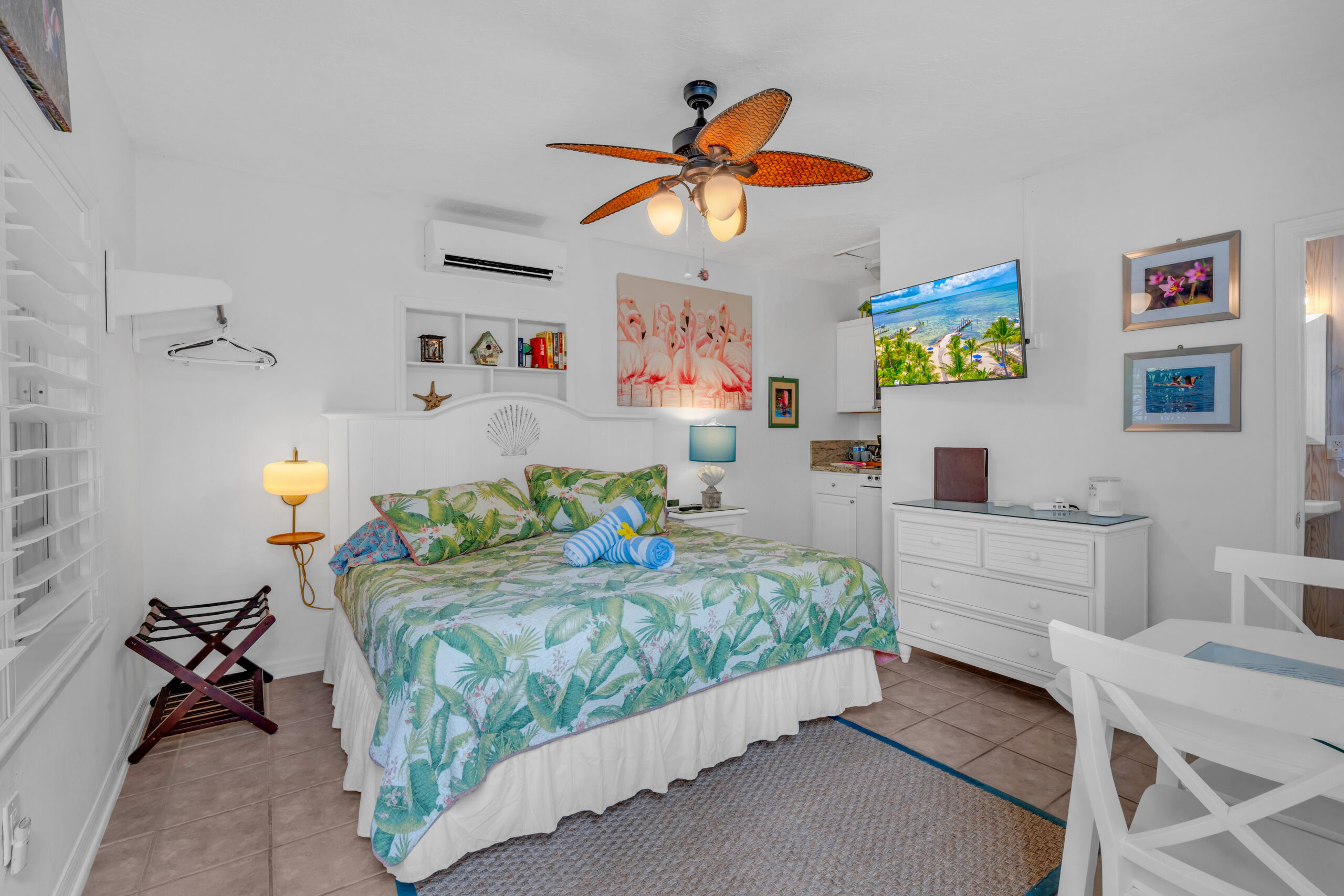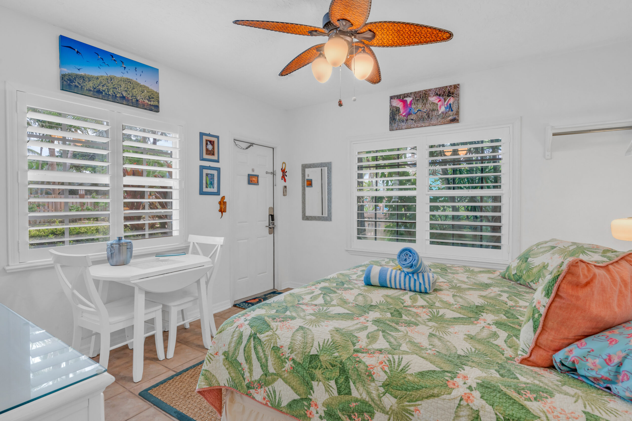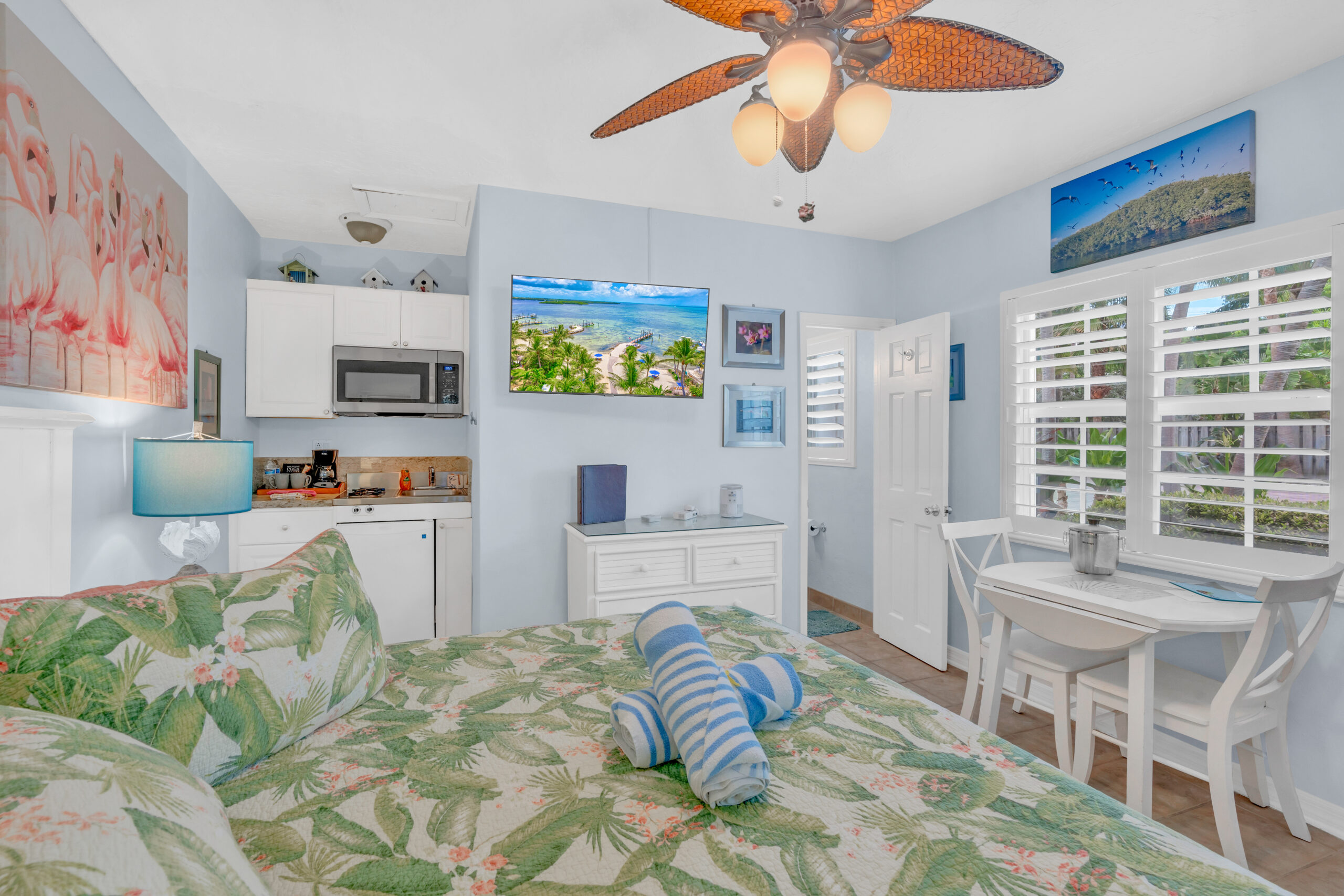 The Flora and Fauna King Efficiency Cottage gives off a warm and bright feel. The tones, art, photography, and vibrant colors in the room reflect the wildlife you may see during your time down here in the beautiful Florida Keys.