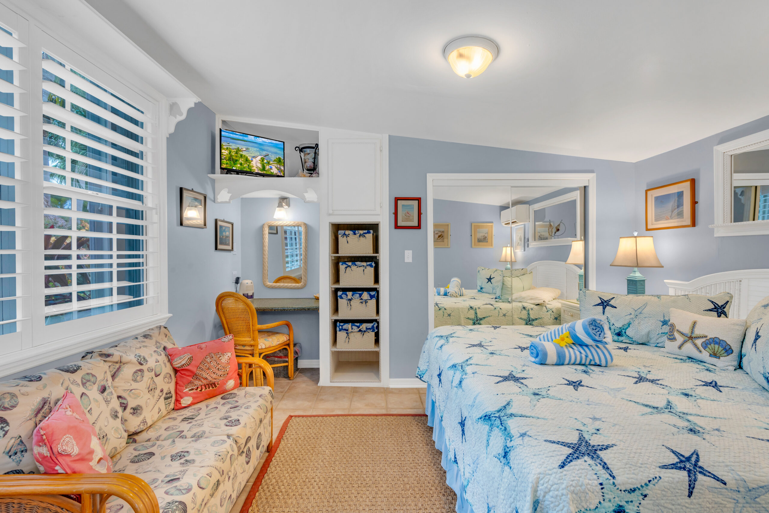 Nothing beats watching a beautiful sunset on the beach at the end of your day. Whether it was a good day, a bad day, or a long day take this moment to allow your problems to melt away, just sit back, relax and appreciate the natural beauty of the sun lowering upon the horizon. Our King One- Bedroom Cottage is a reminder of that sunset waiting for you each afternoon. With sunshine décor and warm terracotta colors throughout to replicate the warm sunshine.